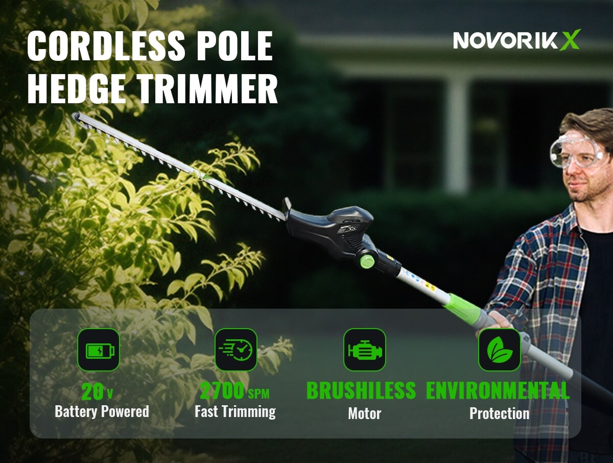 Reach Tall Hedges with the NovorikX 20V Pole Hedge Trimmer