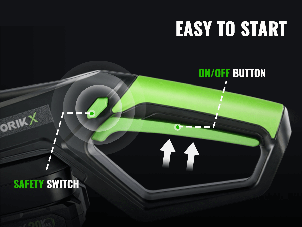 An on/off trigger designed for ease of use gives you instant control, while a built-in safety switch gives you extra protection. In the event of a jam, the motor automatically shuts off to prevent damage before restarting smoothly so you can get back to work without delay.