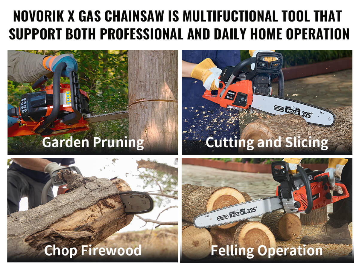 Equipped with a 50cc 2-Cycle 2.8HP engine, this gas chainsaw delivers exceptional cutting power for all your outdoor needs. With a maximum speed of 12,000 rpm and a torque of 1.5NM, it ensures efficient performance, whether you're trimming branches or cutting logs. The lightweight design adds to its versatility, making it perfect for home and professional use.